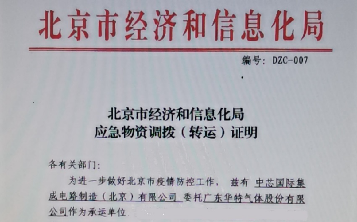 打贏疫情防控的同時(shí),也要打贏經(jīng)濟(jì)戰(zhàn)。公司還收到北京市經(jīng)濟(jì)和信息化局發(fā)來的應(yīng)急保障物資調(diào)撥證明,要求公司及時(shí)為中芯國(guó)際集成電路(北京)有限公司供應(yīng)配套產(chǎn)品。
